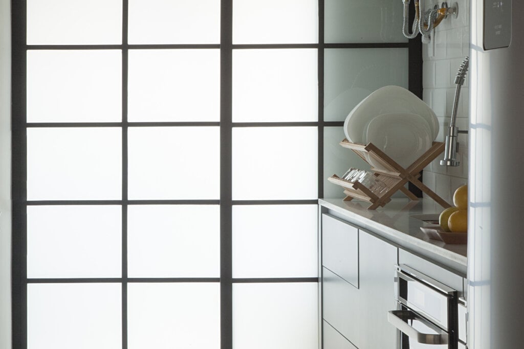 “Em alguns dos meus projetos, os clientes frisaram que conseguiriam deixar o espaço de lavagem arrumado justamente para obter máxima luminosidade na cozinha. No entanto, no meu próprio apartamento, optei por pelo vidro serigrafado, que propicia um pouco mais de privacidade para a área de serviço”, conta Bruno.