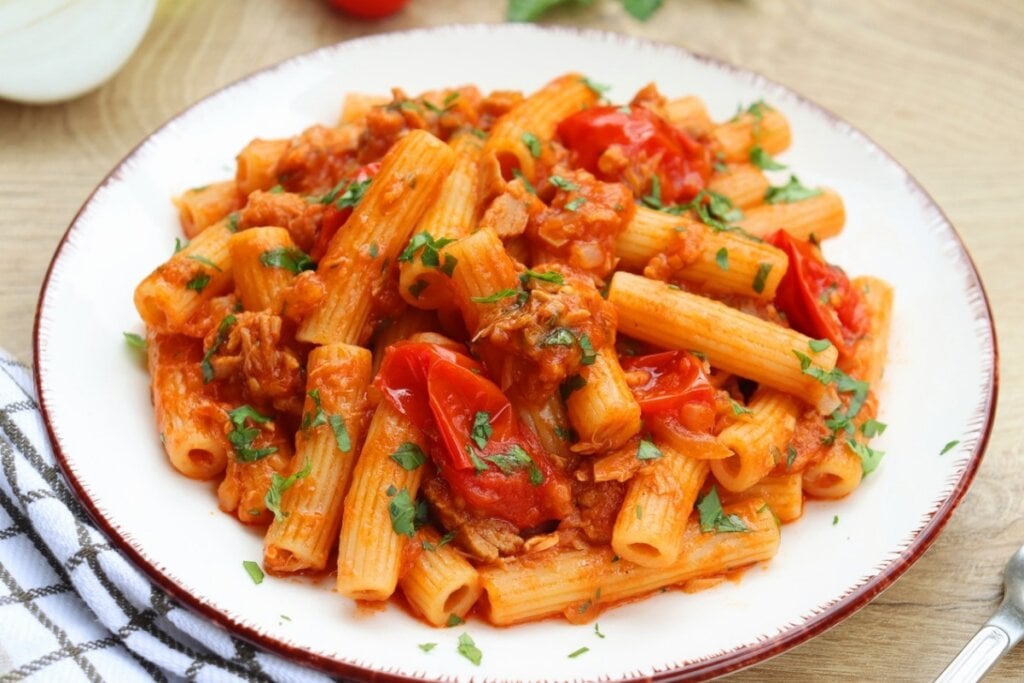 Macarrão com atum e molho de tomate