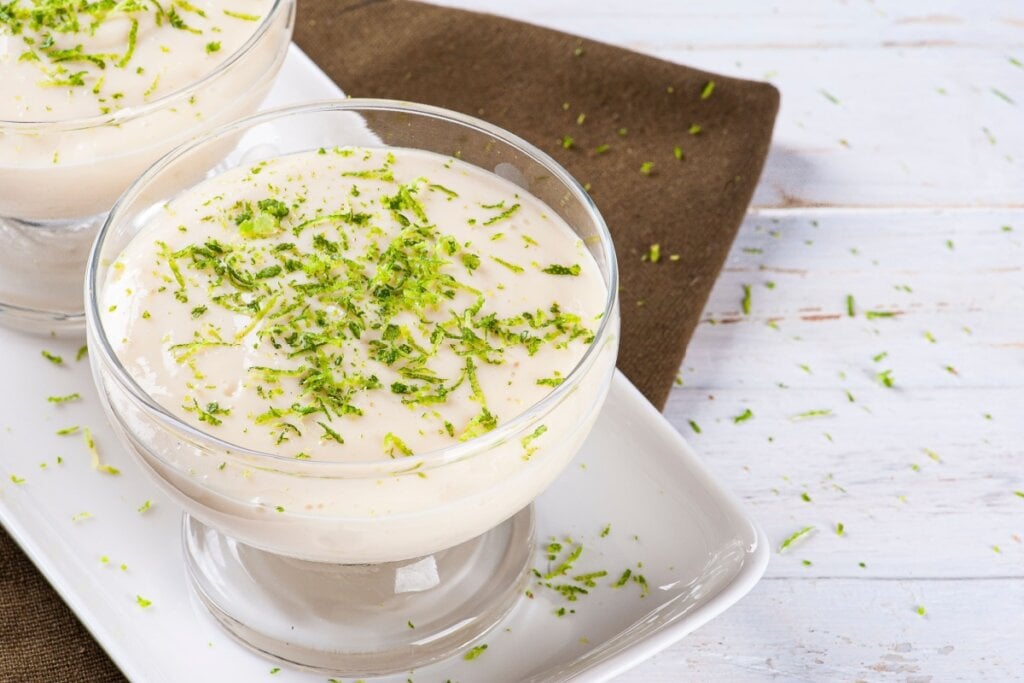 No liquidificador, bata o leite condensado, o creme de leite e o suco de maracujá até obter uma textura homogênea. Coloque a mistura em taças individuais e leve à geladeira por 2 horas. Antes de servir, decore com as raspas de limão.