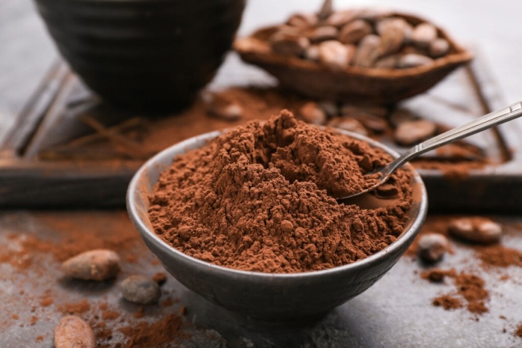 - Achocolatados em pó industrializados: contêm muito açúcar e pouco cacau;