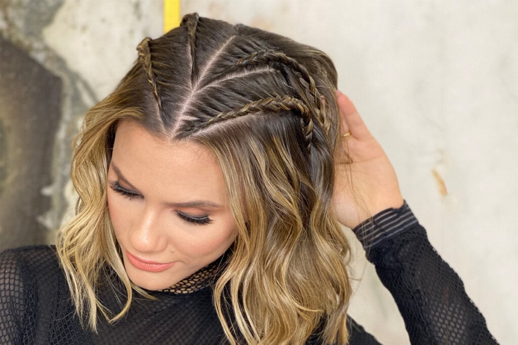 Sim! Quem tem fios curtos também pode aproveitar as tranças! O cabeleireiro Adno Moreira ensina uma opção criativa e que não requer tanta prática: “É preciso fazer uma trança de 3 pontas de raiz no topo da cabeça, mas é importante que o início das duas tranças esteja exatamente na parte central do rosto”, orienta.