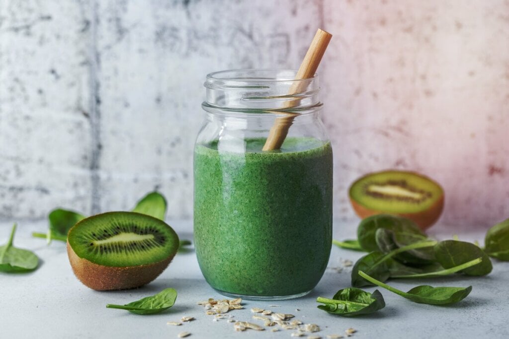 Suco verde de kiwi com aveia e espinafre