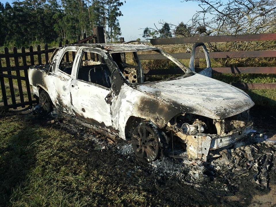 Após se esconder em um local seguro, o administrador visualizou seu carro em chamas. Os abigeatários incendiaram o veículo, fugindo em seguida.