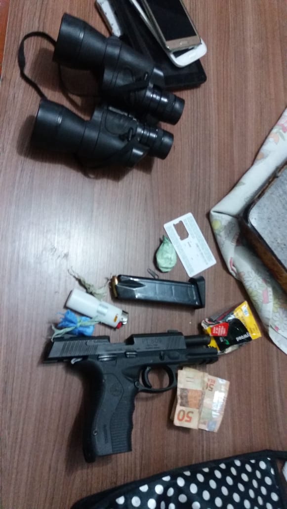 Munição calibre 38, calibre 12, três buchas de cocaína, uma porcão de maconha e diversos aparelhos de celulares, sem procedência, também foram apreendidos.