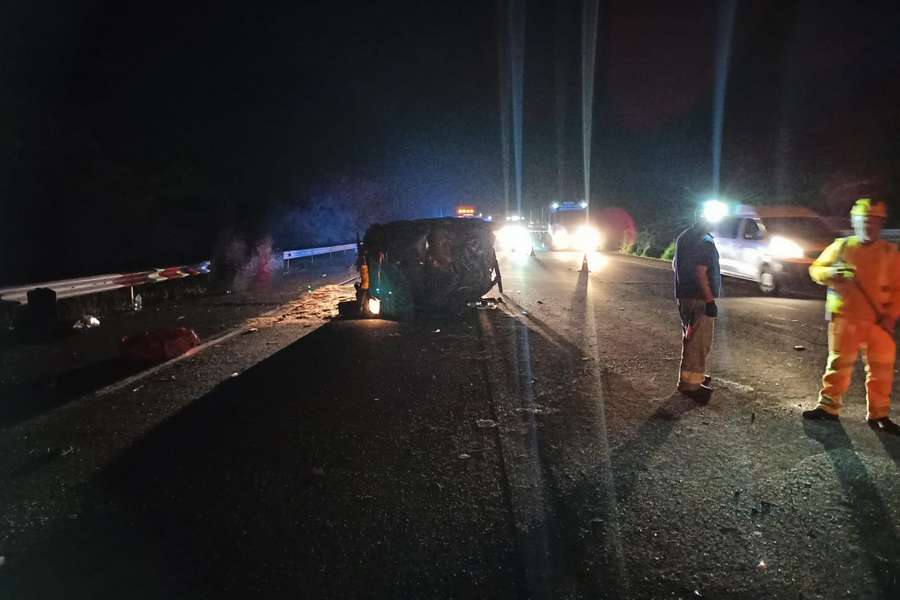 Na sequencia, o motorista deste automóvel perdeu o controle, vindo atravessar o canteiro central, capotando em cima da pista contrária, atingindo um Onix.