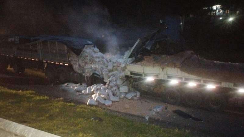 Com o impacto da colisão, um dos caminhões, que transportava argila, acabou pegando fogo.