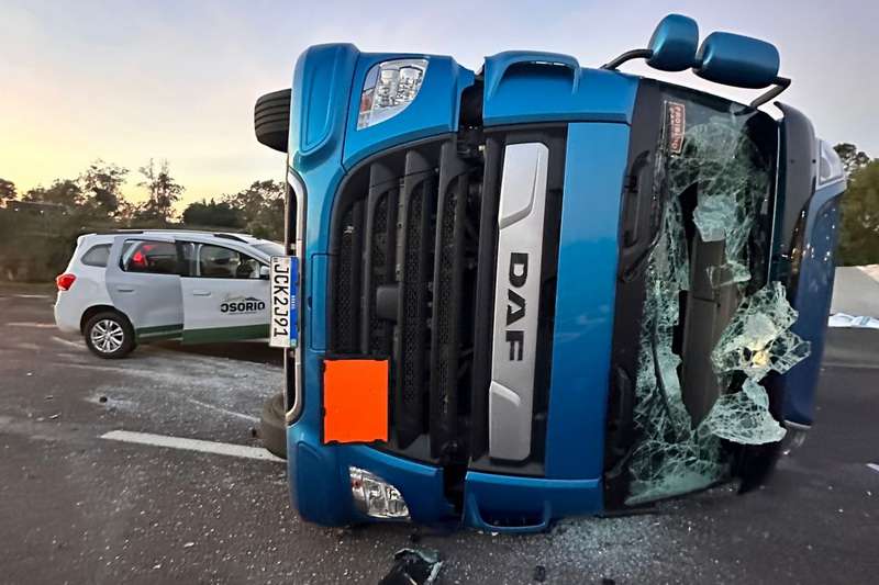 O incidente envolveu uma carreta, um caminhão e um carro da Prefeitura de Osório, resultando no tombamento da carreta.