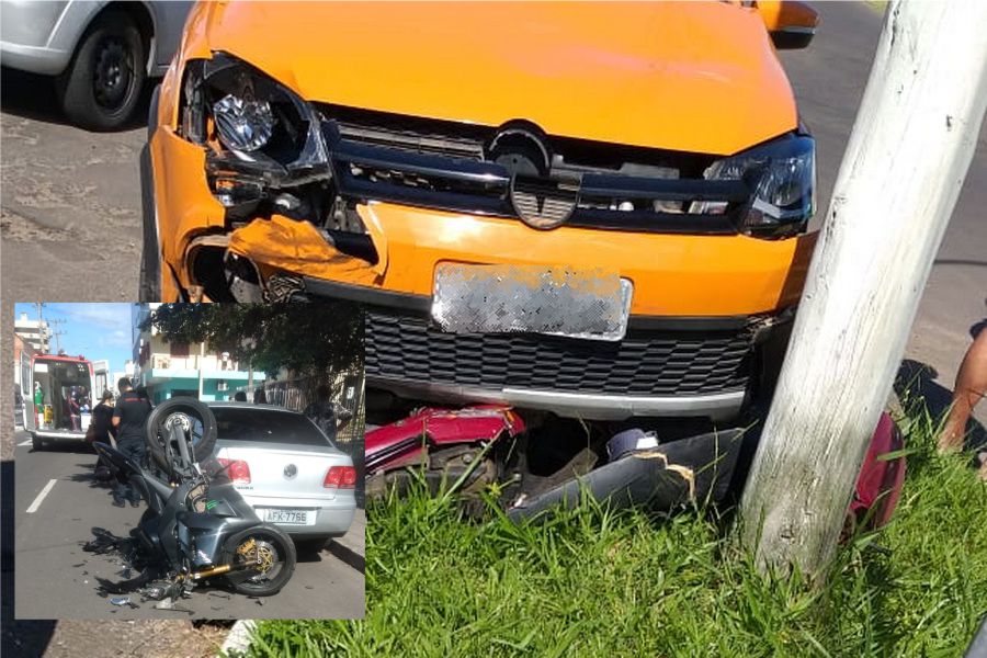 Já na Avenida Getúlio Vargas, no centro da cidade, um motociclista foi encaminhado ao hospital consciente se queixando de dores no quadril, após colidir sua moto na traseira de um automóvel.