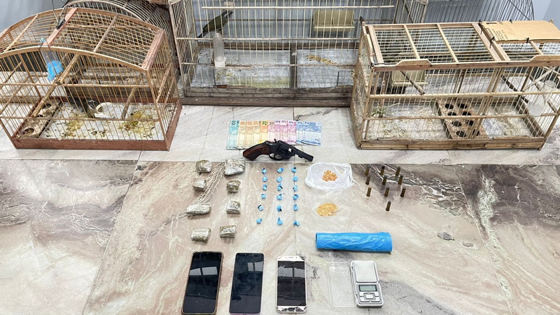 A ação também revelou um crime ambiental: foram apreendidos 6 pássaros silvestres mantidos ilegalmente em 9 gaiolas.