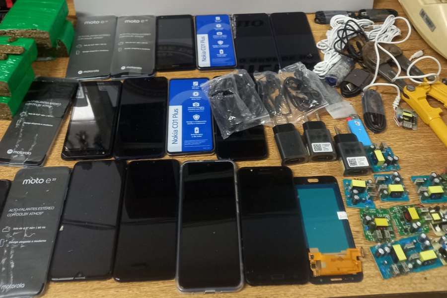 O adolescente carregava uma mochila contendo 1 kg de maconha, 18 aparelhos celulares, 17 fontes, 12 cabos USB, um corta vergalhão, que seriam lançados para o interior da PMEO.