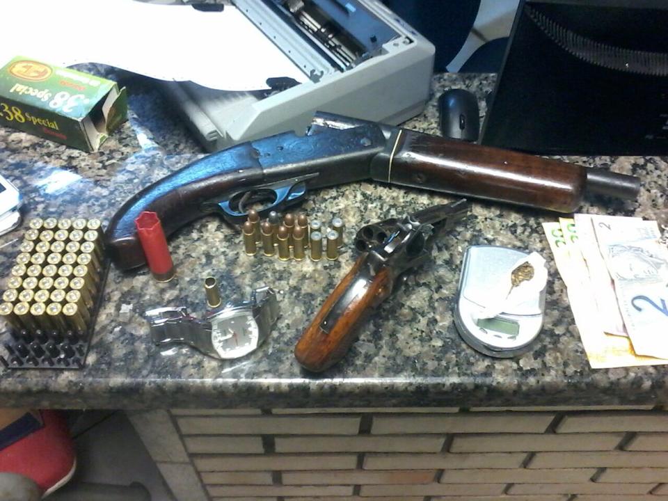 Com eles foram encontradas armas que teriam sido utilizadas nos crimes e ainda: 52 cartuchos calibre 38 intactos, uma moto Honda Biz com chassi raspado, uma moto Titan, uma Pickup Pajero com placas do Rio de Janeiro, além de balança de precisão e vários eletrônicos, provavelmente furtados ou roubados, usados como moeda de trocas.