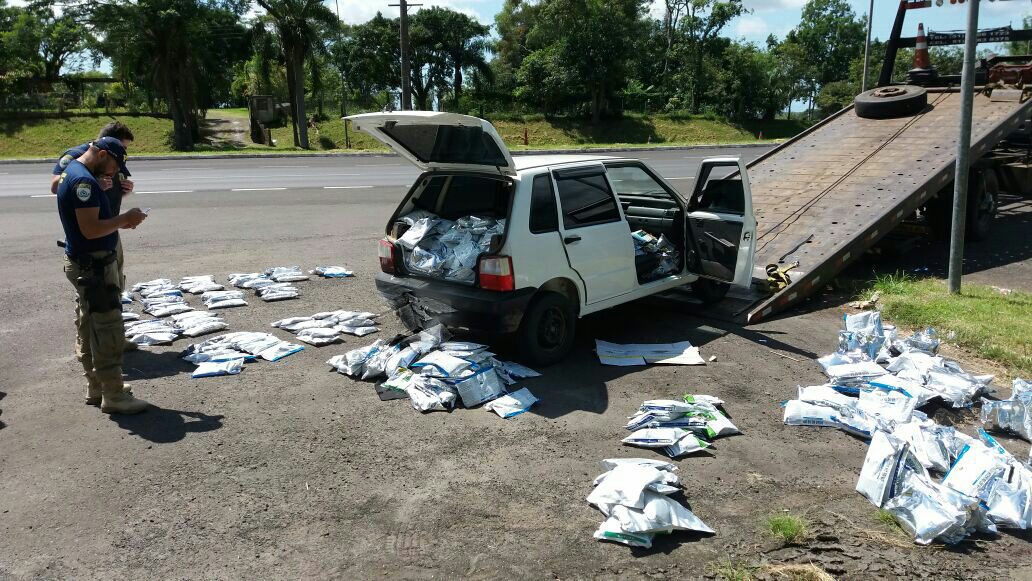 No veículo os policiais encontraram 351 kg de diversos tipos agrotóxicos de origem Uruguaia, conforme constatado nos rótulos das embalagens, todos com comercialização proibida no Brasil.