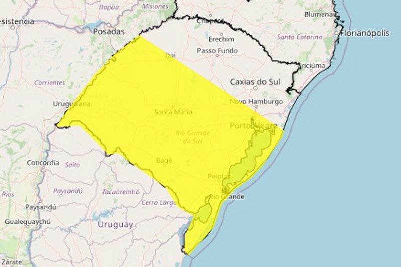 O Instituto Nacional de Meteorologia (Inmet) emitiu um alerta amarelo para o risco de tempestade em diversas regiões do Rio Grande do Sul.