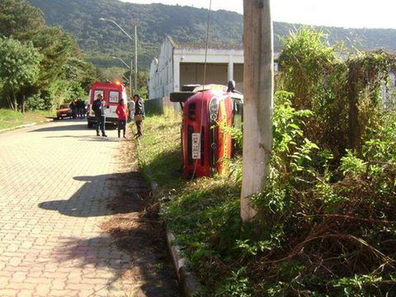 Uma aluna capotou o veículo da auto-escola, na manhã desta quarta-feira, em Osório.