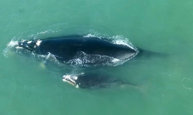 Com até 18 metros de comprimento, essas baleias costumam dar à luz seus filhotes enquanto permanecem no litoral gaúcho.