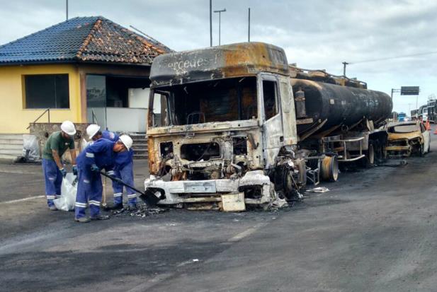 O incêndio teria iniciado após um veículo colidir na traseira do caminhão. A rodovia chegou a ficar bloqueada nos dois sentidos.