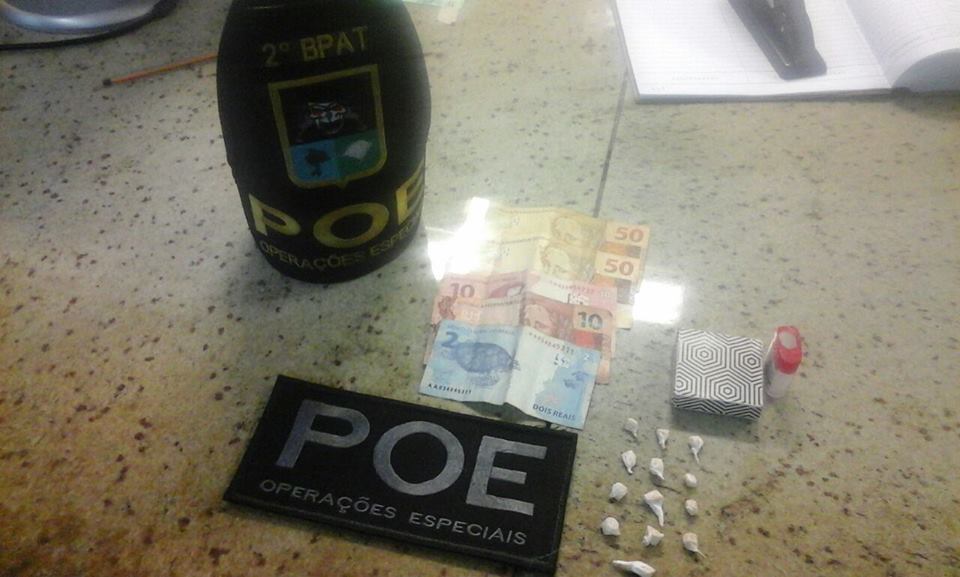 O acusado foi abordado pela BM, na Rua Alfa da Cruz, bairro Arco Iris e com ele encontrado um pote contendo 13 pedras de crack e a quantia de R$ 122,00.