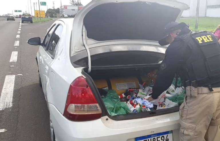 Policiais Rodoviários Federais abordaram um automóvel Etios com placas de Gravataí. No carro estava o motorista, um homem de 30 anos, acompanhado de quatro mulheres com idades entre 24 e 37 anos.