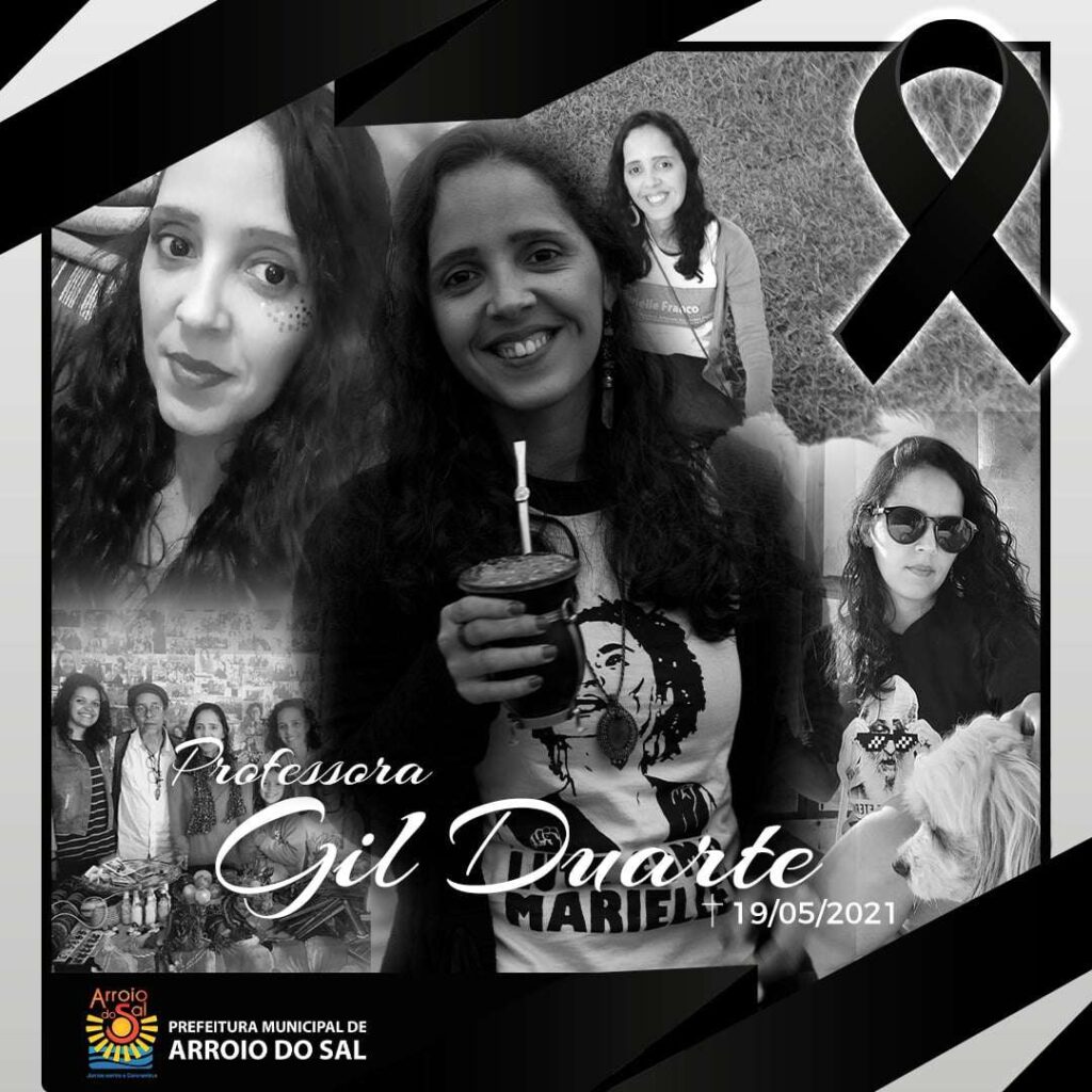 “É com profundo pesar que comunicamos o falecimento da jovem educadora Gil Pinto Duarte, da escola José de Quadros de Arroio do Sal.