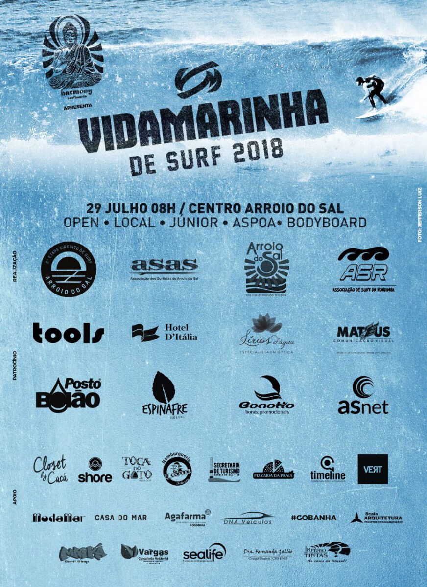 O Vida Marinha de Surf 2018 é apresentado pela Harmony Surfboards e terá cinco categorias em disputa: Open, Júnior, Local, ASPOA e Bodyboard. A categoria ASPOA é válida somente para os surfistas filiados na Associação de Surf de Porto Alegre. A competição integra a programação da 16ª Festa do Pescador, tradicional evento do Litoral Norte, e acontece na beira mar do Centro de Arroio do Sal.