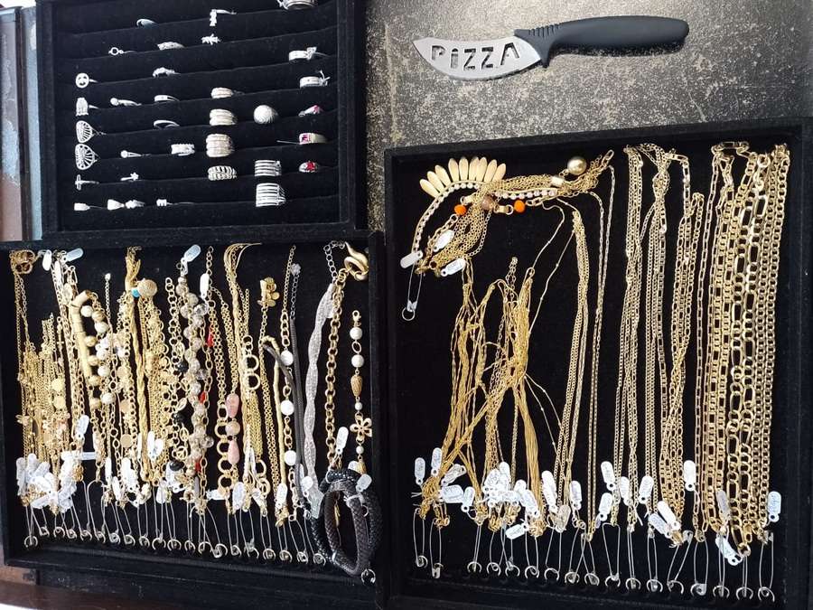 Em revista pessoal ao indivíduo foi localizado todo o material roubado, avaliado em cerca de R$ 15.000, uma faca, que foi utilizada no momento do delito e um telefone celular.