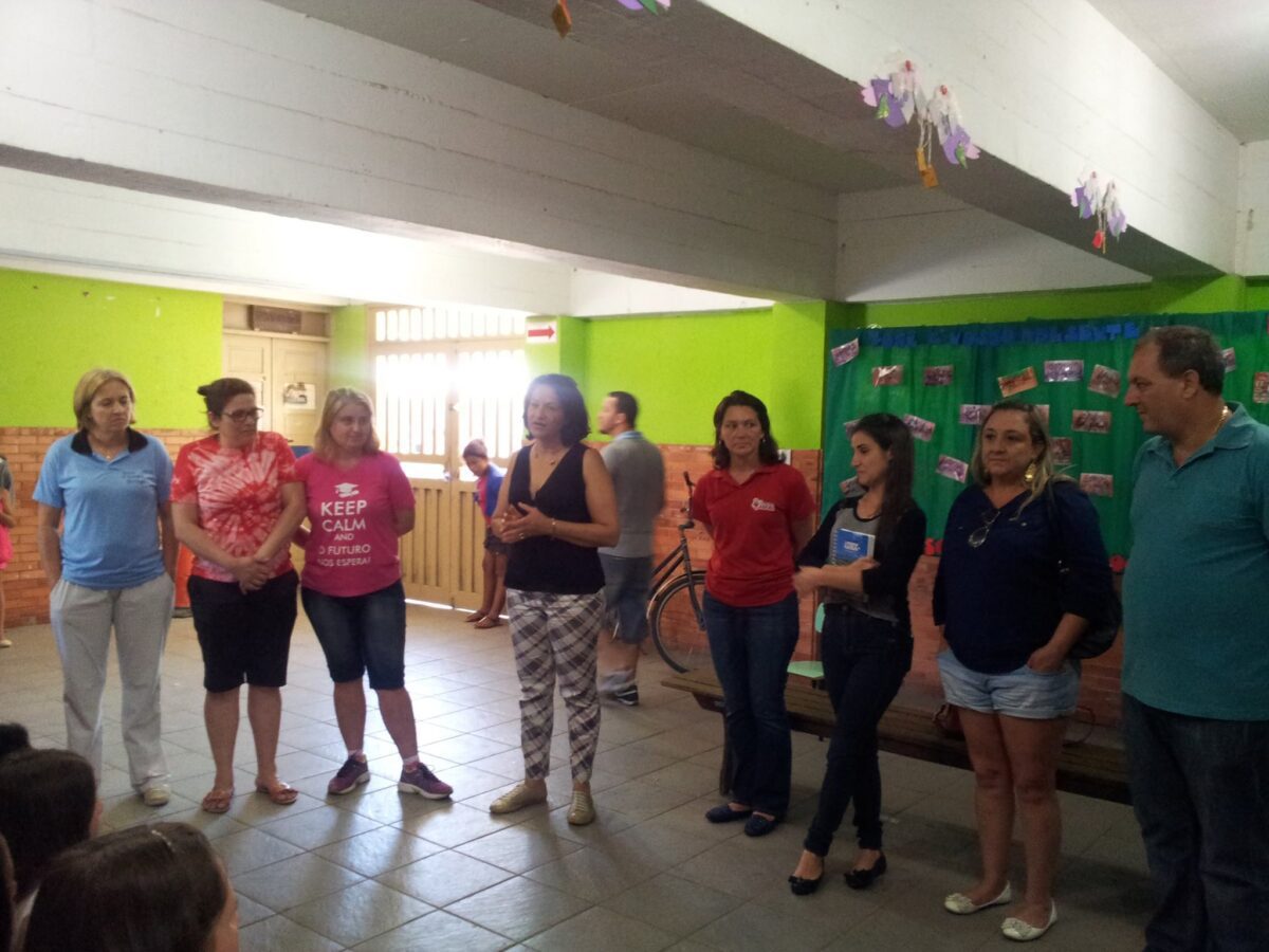 Na manhã da sexta-feira, dia 11, o novo presidente esteve, acompanhado da secretária da Educação, Lavina Dias de Souza, da secretária-executiva, Clésia Bastos e da secretária Daniela Valim, fazendo a entrega de (1) UM COMPUTADOR NOVO COMPLETO NA CAIXA, OFERECIDO PELA ASSOCIC E LIVRARIA E PAPELARIA CABRAL, para a Escola Municipal de Ensino Fundamental Iracema Vizzotto, do Bairro Santo Antônio, mais uma vez a grande ganhadora da “Gincana Faça Uma Criança Feliz”, que teve a finalidade de premiar a escola que arrecadasse o maior número de doações para o 5º Brechó Beneficente da ASSOCIC, realizado em setembro de 2015.