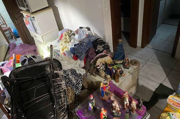 No entanto, ao acompanharem o homem até sua residência em Osório, a polícia descobriu o corpo da vítima coberto por concreto, com as pernas cortadas, e o local em desordem, contendo várias imagens religiosas espalhadas.