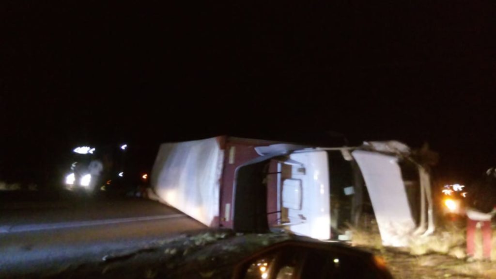 Atualizada às 22h05min: Um acidente de trânsito envolveu dois caminhões e três carros, no início da noite desta terça-feira, na BR-101, em Osório.