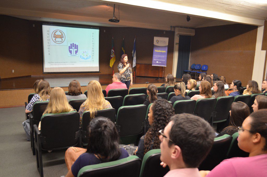 Na noite de terça-feira, dia 29, o curso de Fisioterapia realizou a Aula Magna do curso, com o tema Fisioterapia Oncofuncional, com a Fisio.Esp. Nair Paim. O evento aconteceu no auditório Felipe Tiago Gomes, no 2º andar da UNICNEC.