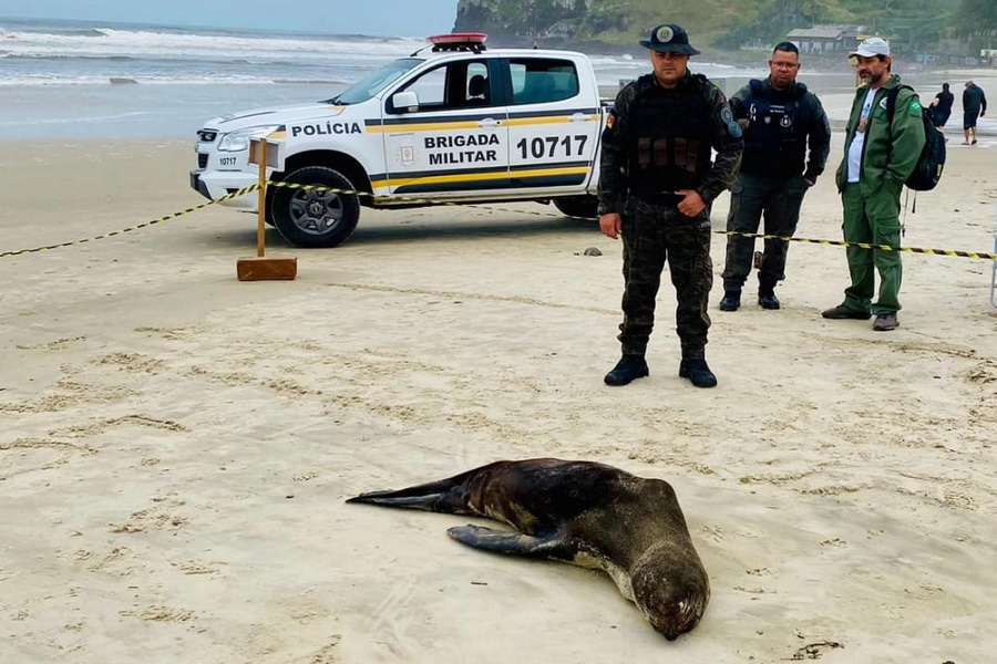 Foto: Batalhão Ambiental monitora animal marinho na Praia da Cal em Torres