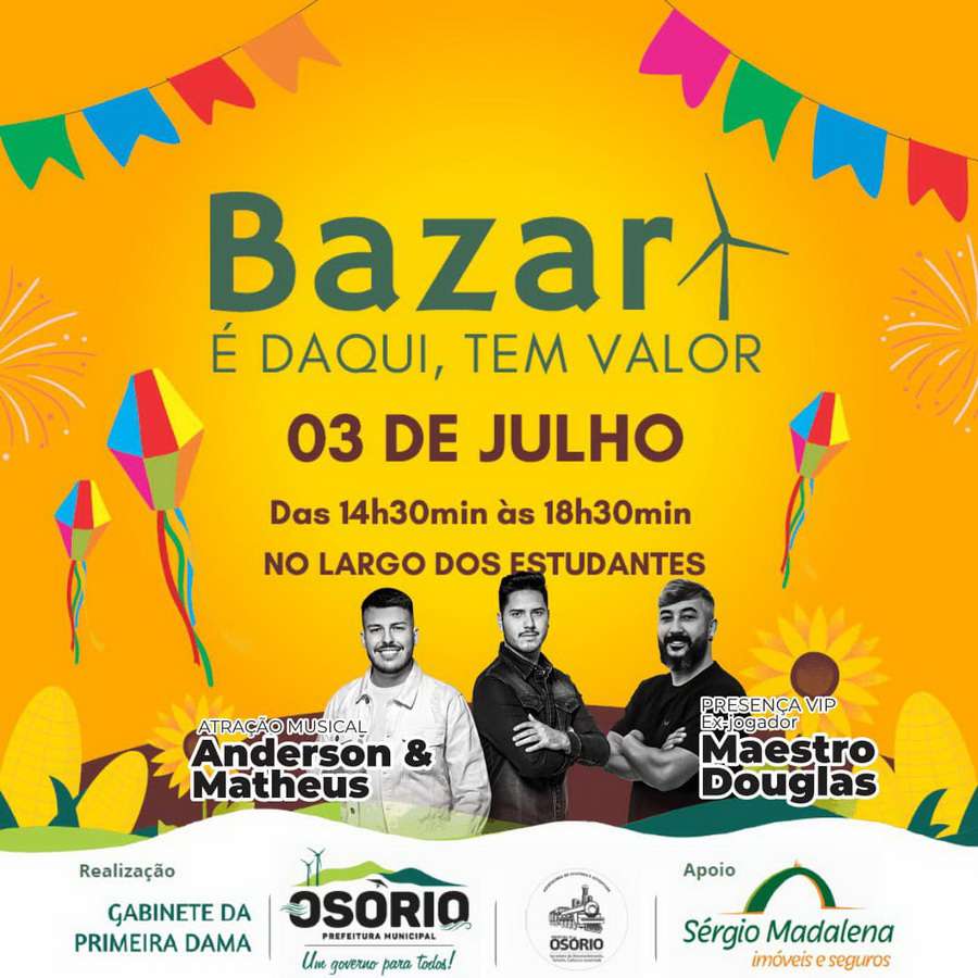 Bazar É Daqui, Tem Valor terá show e a presença do ex-jogador do Grêmio Douglas em Osório