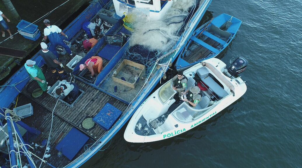 Três pessoas foram presas e apreendidas duas embarcações, 50 toneladas de pescados e 10 km de redes. Ao todo foram contabilizados 36 vistorias em embarcações.