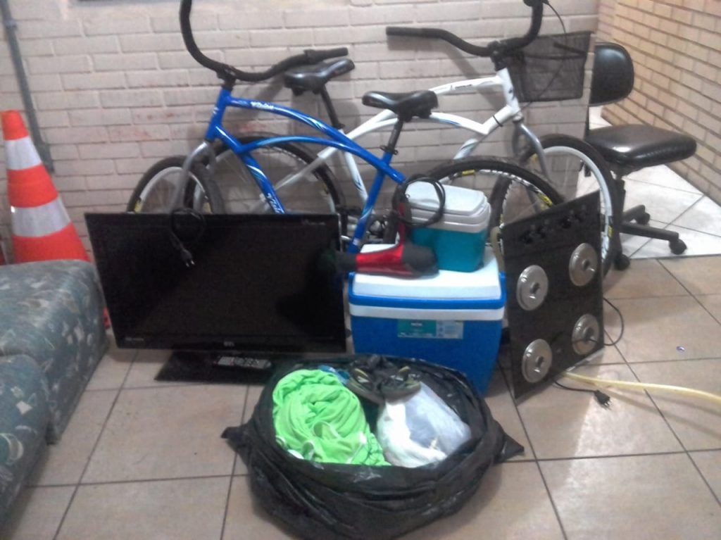 Devido às condições climáticas eles foram perdidos de vista, mas a BM conseguiu recuperar todos os objetos que já estavam sendo carregados de uma moradia, como bicicletas, fogão e televisor.
