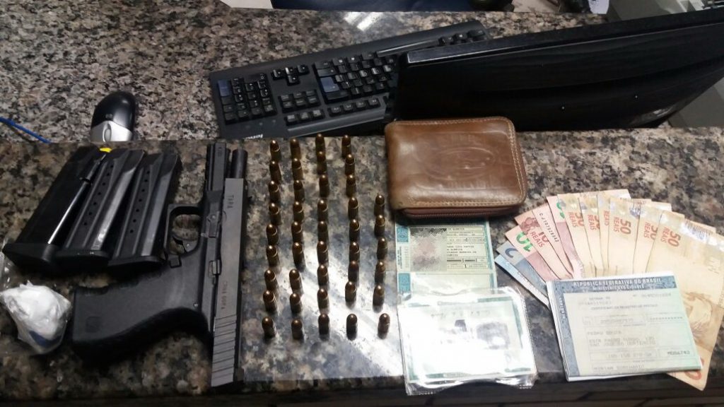 Eles estavam em um veículo Citroen C3 na hora da abordagem. Com eles foi encontrada uma pistola calibre 9mm carregada com 16 munições, além de dois carregadores extras, totalizando 42 munições e também 50 gramas de cocaína.