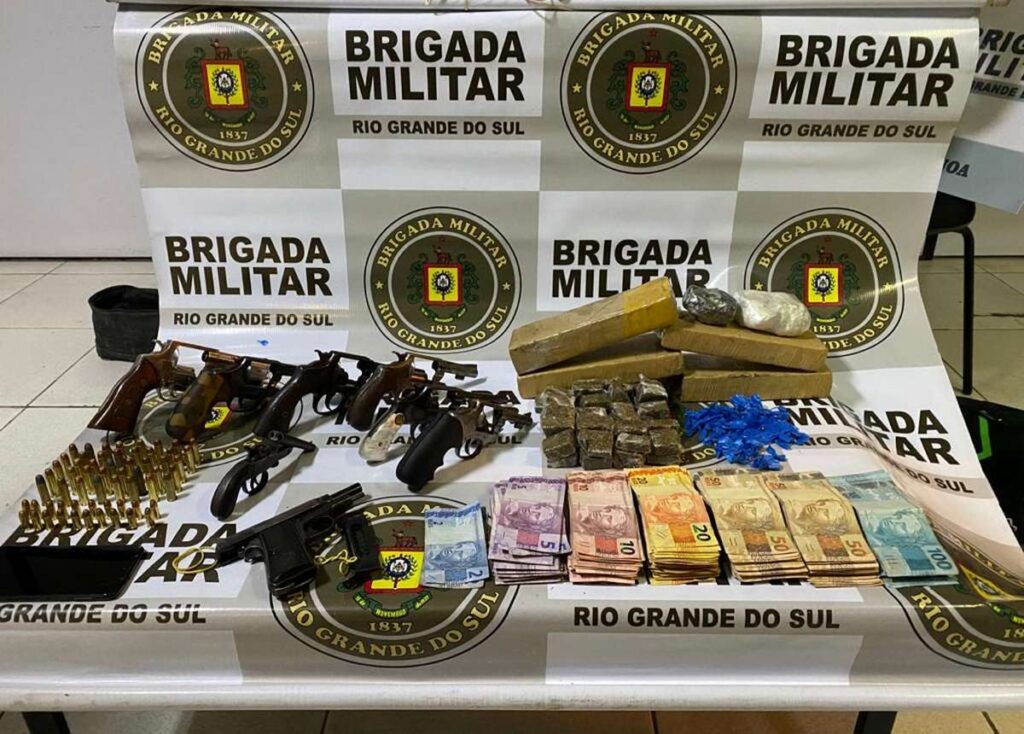 Na mochila utilizada pelo homem foram encontrados quatro revólveres calibre .38, dois revólveres calibre .32, um revólver calibre .22, 41 munições de calibre .38, 20 munições calibre .32, 47 pedras de crack, oito porções de cocaína, duas porções maiores de crack, 45 porções de maconha e mais de 19 mil reais.