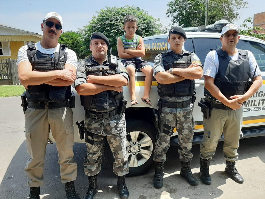 Uma guarnição do 8º BPM realizou uma visita muito especial no bairro Primavera, em Osório, na manhã de sábado (18), ao menino Wagner, que comemora seu aniversário de sete anos.