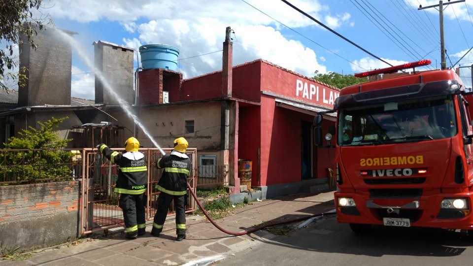 A forte caloria da churrasqueira de um restaurante acabou fazendo que telhas que cobriam o local pegassem fogo.