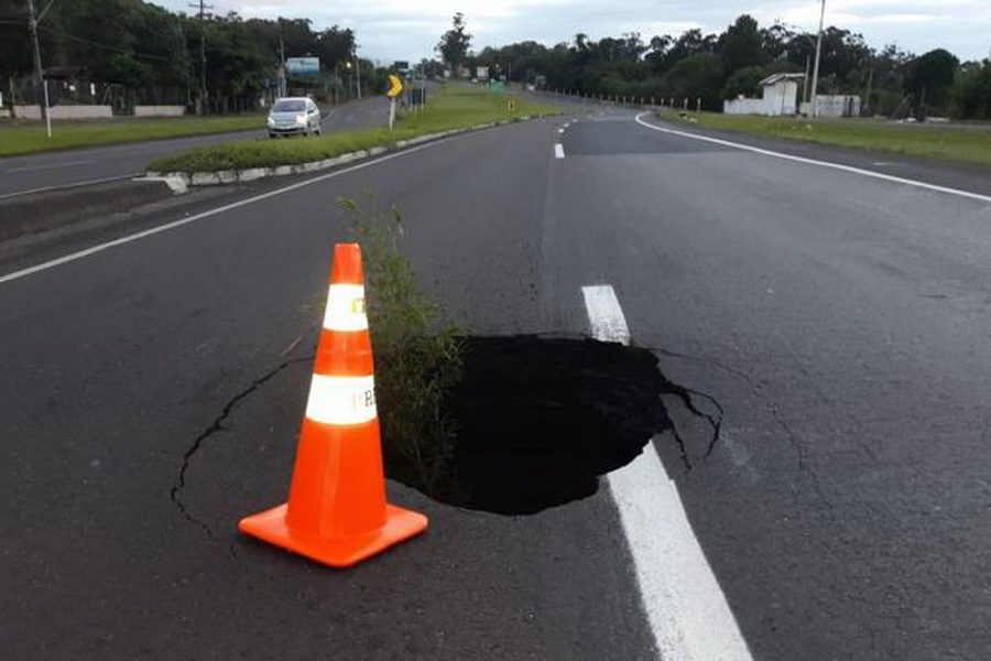 A concessionária CCR Via Sul, que administra a rodovia, afirmou que o piso cedeu devido a um problema na rede de drenagem – o “bueiro de travessia”, como é chamado pelos técnicos da empresa.