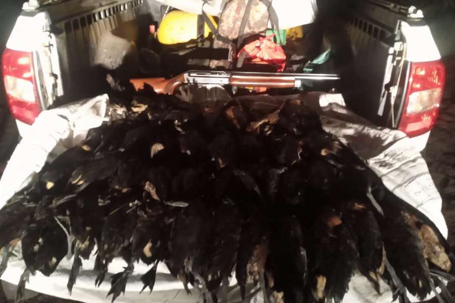A guarnição deu ordem de parada e ao revistar o veículo foram encontrados uma espingarda cal. 12 municiada com um cartucho intacto, 157 munições intactas, 304 estojos deflagrados, 42 aves abatidas, da espécie Marreca- Caneleira, ave anseriforme da família Anatidae, de cor marrom acanelado e ainda três vivas, sendo estas devolvidas ao seu habitat natural.