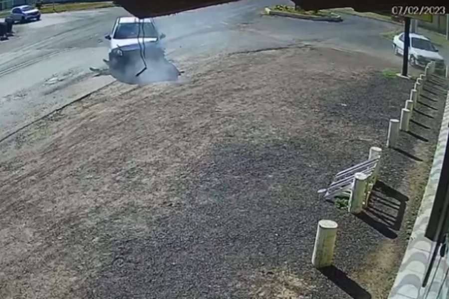 Foto: Câmera de vigilância flagra acidente entre 2 veículos em Balneário Pinhal
