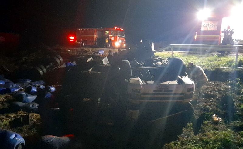 De acordo com a dinâmica do acidente e vestígios encontrados no local, um caminhão trator Scania R/114, com placas de Canoas, atrelado a um semi-reboque de Novo Hamburgo, saiu da pista enquanto se deslocava no sentido Santo Antônio da Patrulha para Rolante, vindo a capotar.