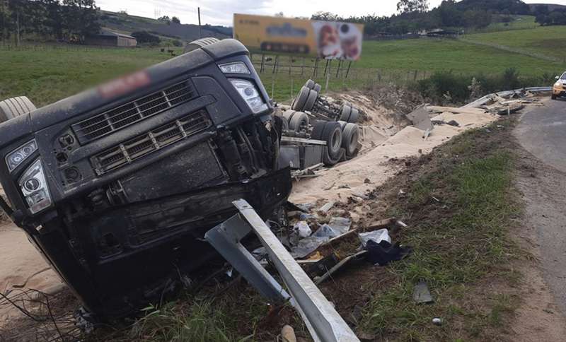 Na manhã deste sábado (18), um caminhão que transportava areia saiu da pista e capotou na ERS-474, em Santo Antônio da Patrulha.