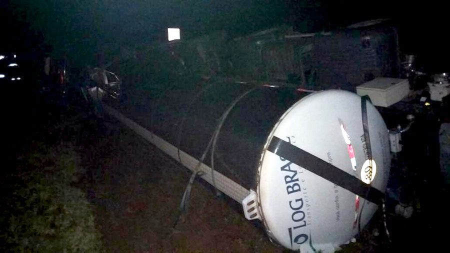Um caminhão tanque tombou na noite dessa sexta-feira (13), no km 58 da BR-101, em Terra de Areia. O veículo carregava produtos vegetais e o motorista teve lesões leves.