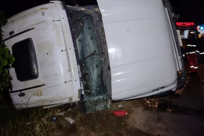 Ao chegar no local, a equipe constatou a saída de pista seguida de tombamento de um caminhão, resultando em uma pessoa ferida.