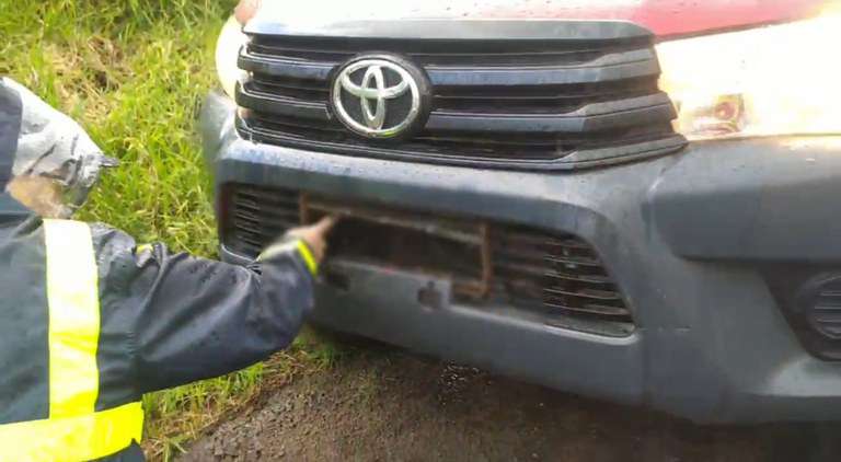 Ao inspecionar o veículo, notaram que a placa dianteira estava solta.