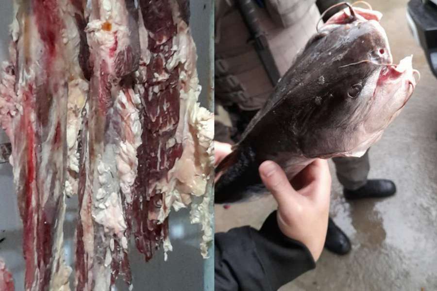 Mais de duas toneladas de produtos de origem animal impróprios para o consumo como carne bovina e suína, aves, peixes e embutidos foram apreendidos.