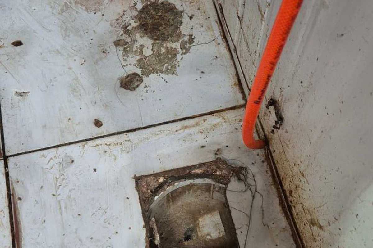 Detalhe que chocou a equipe: esgoto dentro da câmara fria
