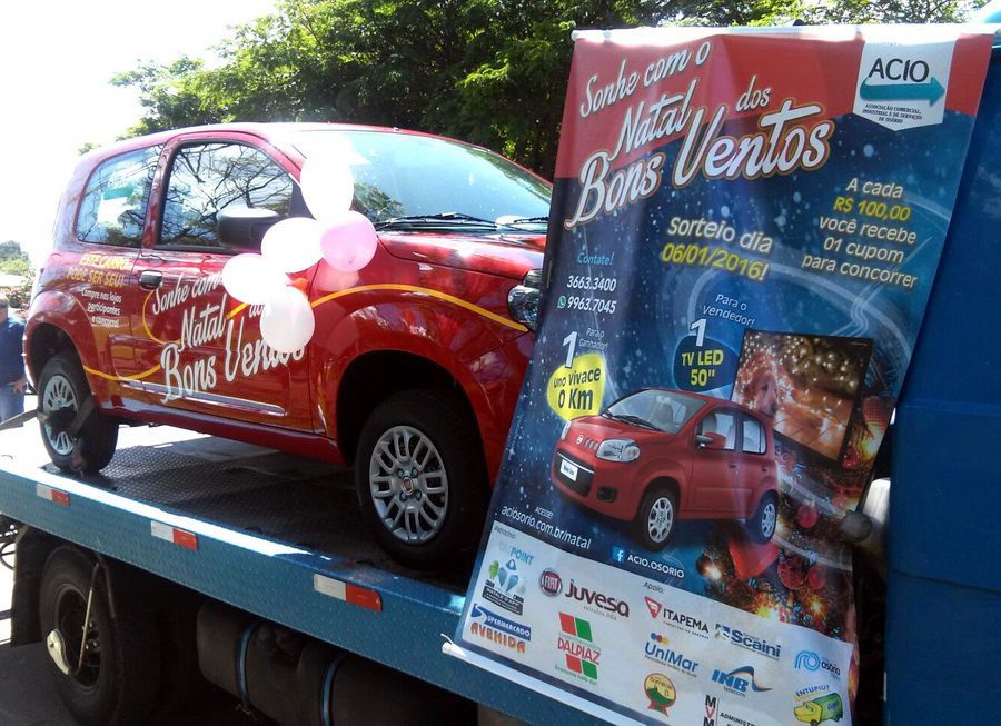 Além disso, o veículo Uno Vivace, zero quilômetro, que será sorteado ao final da campanha, também desfilou pelas ruas de Osório. A carreata foi um sucesso, devido a grande receptividade do comércio e da população em geral. Para o mês de dezembro já está agendada outra carreata.