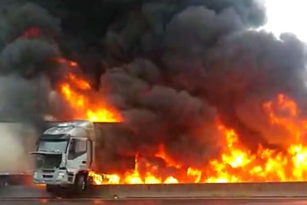 Com o impacto o caminhão com placas de Caxias do Sul incendiou.