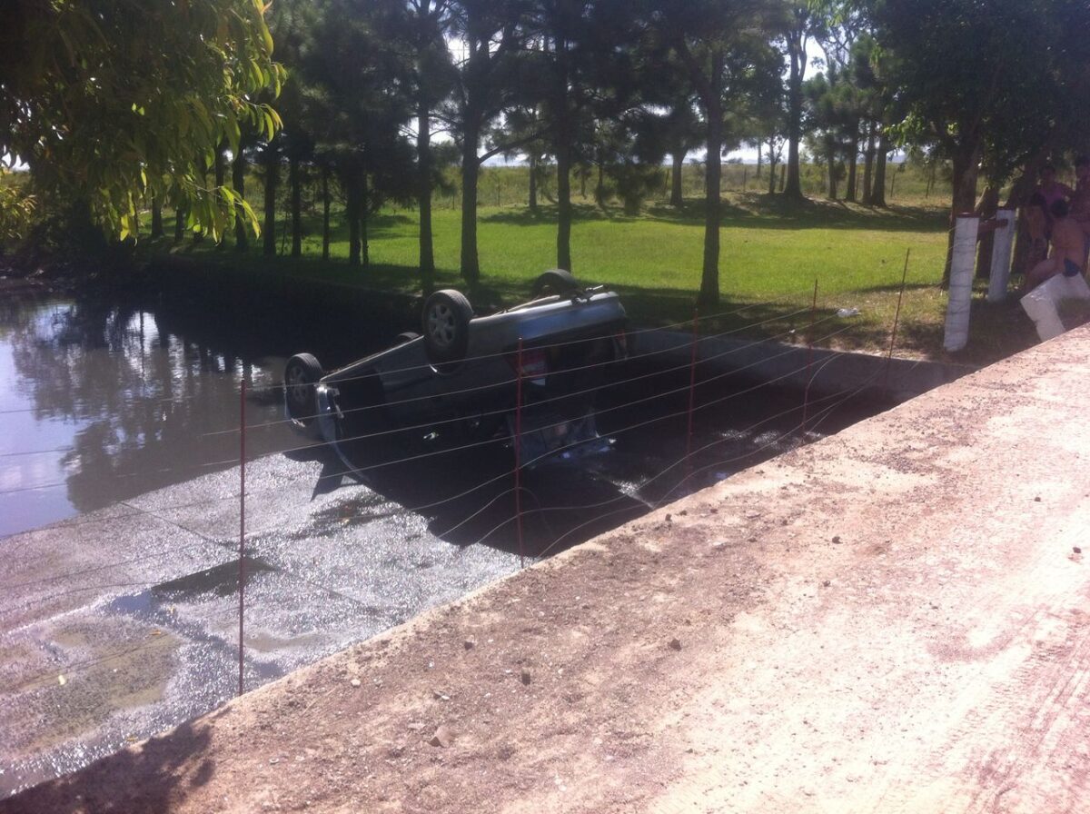 Um veículo capotou após cair de um pontilhão, na entrada da Lagos dos Barros, conhecida popularmente como “Lagoa da Santinha”, em Osório.